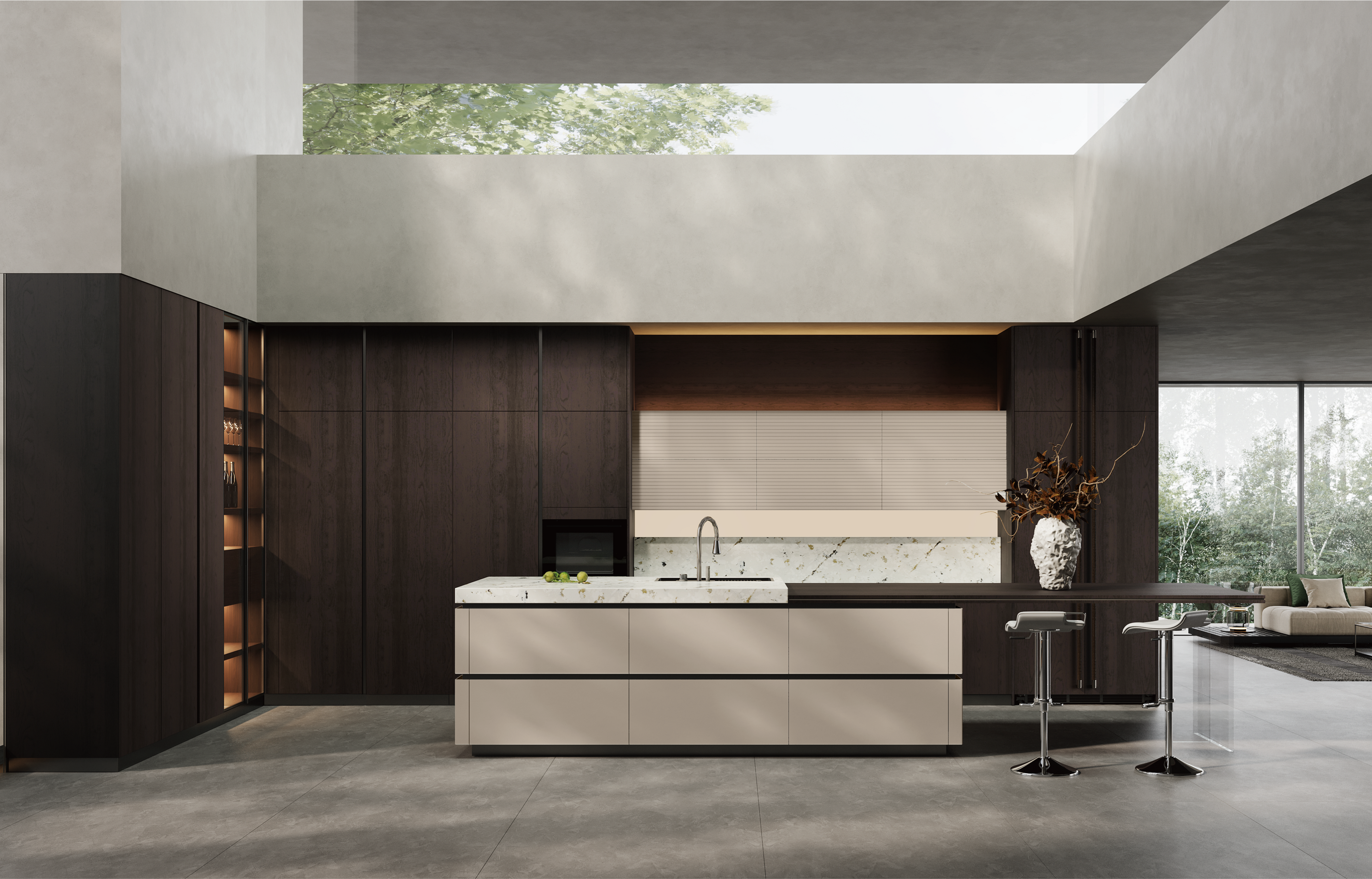 通过KU酷游厨柜量体裁柜,定制出适合主厨下厨的烹饪区和洗涤区的舒适高度。